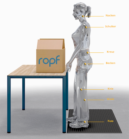 „Auf einer ROPF Arbeitsplatz-Matte arbeite ich lockerer und entspannter. Der Rücken schmerzt nicht mehr und ich fühle mich selbst nach der Arbeit noch fit!“